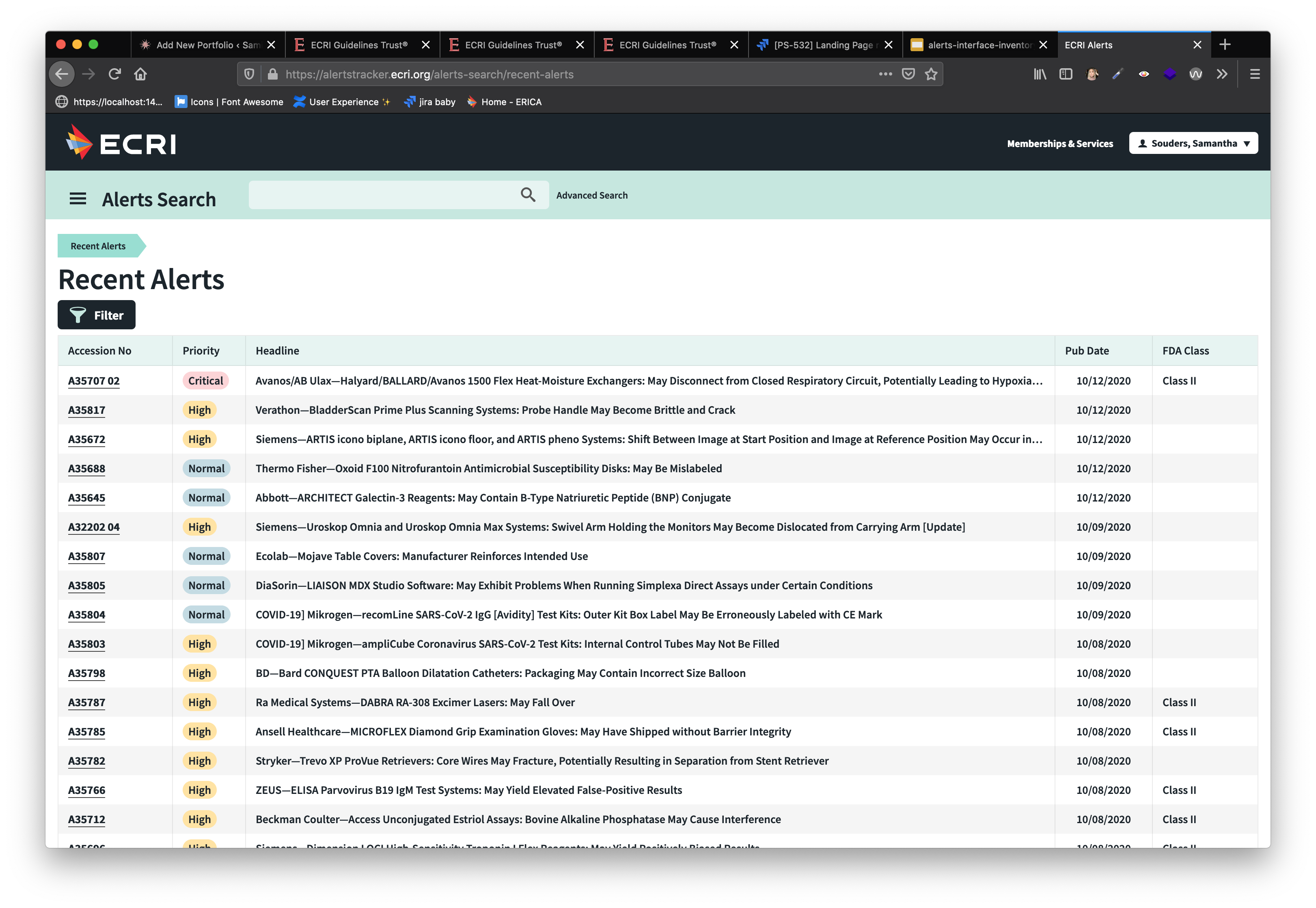 ECRI Institute underwent a large rebranding in 2019 which included a corporate name & logo change to remove ‘Institute’ from the name. As part of the rebranding, all ECRI applications needed updated to swap out the old logo for the new. It became clear that the applications would need to undergo a facelift in order to better fit into the new corporate branding. Alerts Tracker was also being separated into three different products, so the Alerts Tracker branding needed to be removed as well.