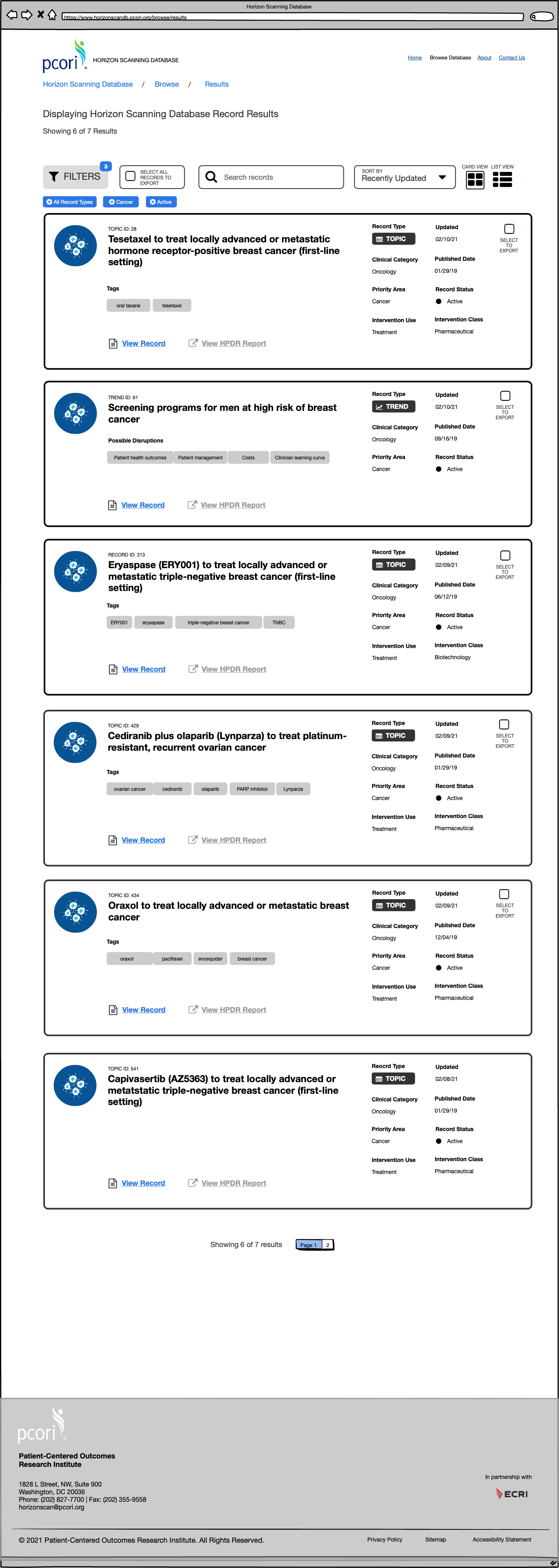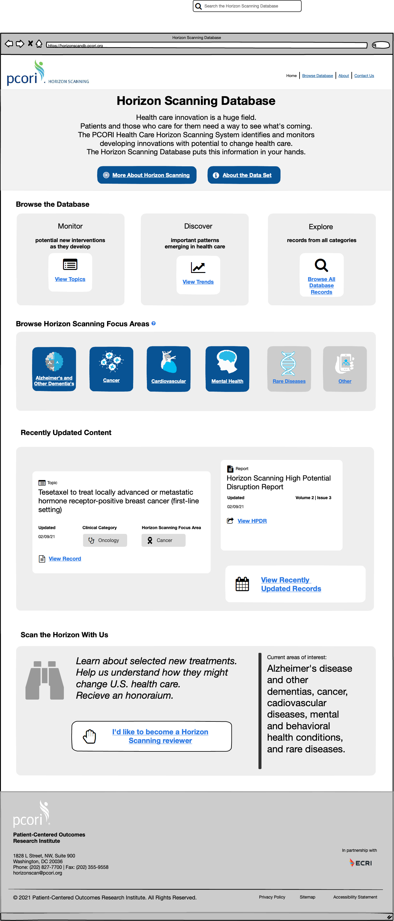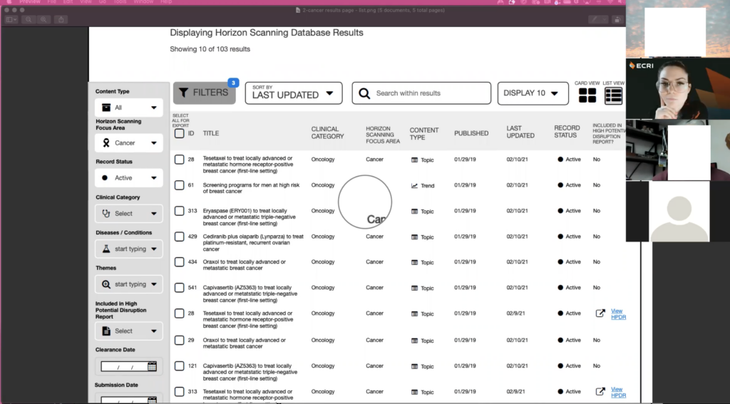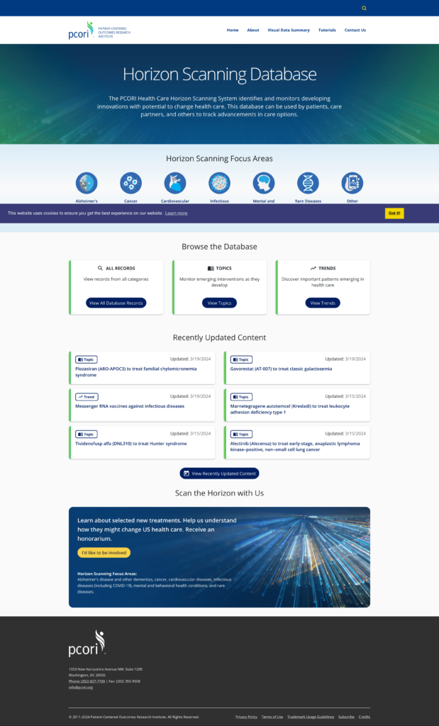 At ECRI, a patient safety organization, in collaboration with PCORI (Patient Centered Outcomes Research Institute), I led the UX and UI design for their new Horizon Scanning Database project.
