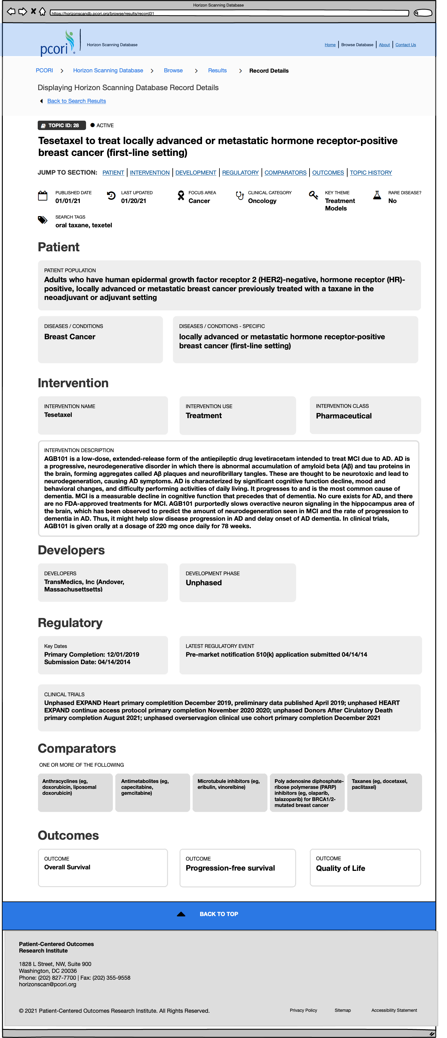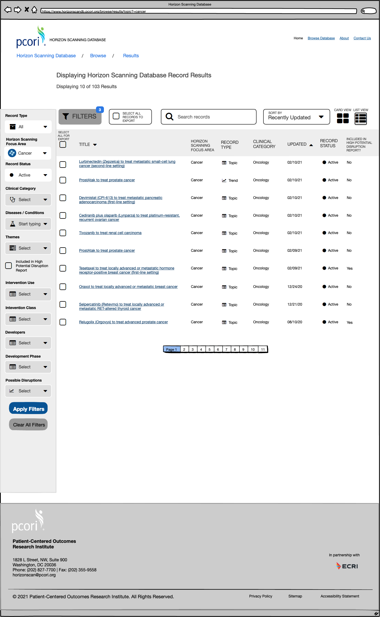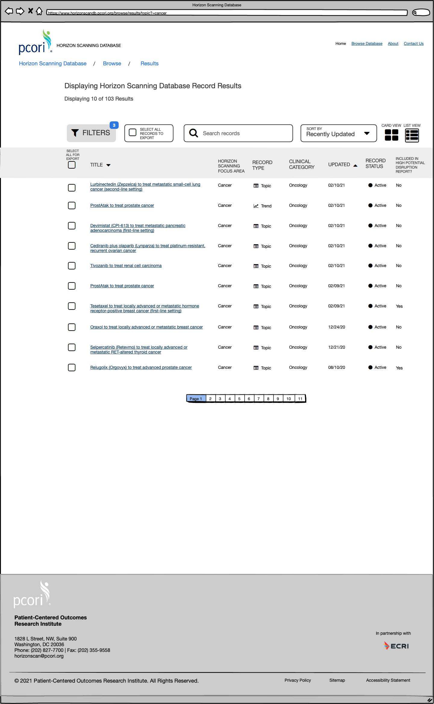 At ECRI, a patient safety organization, in collaboration with PCORI (Patient Centered Outcomes Research Institute), I led the UX and UI design for their new Horizon Scanning Database project.